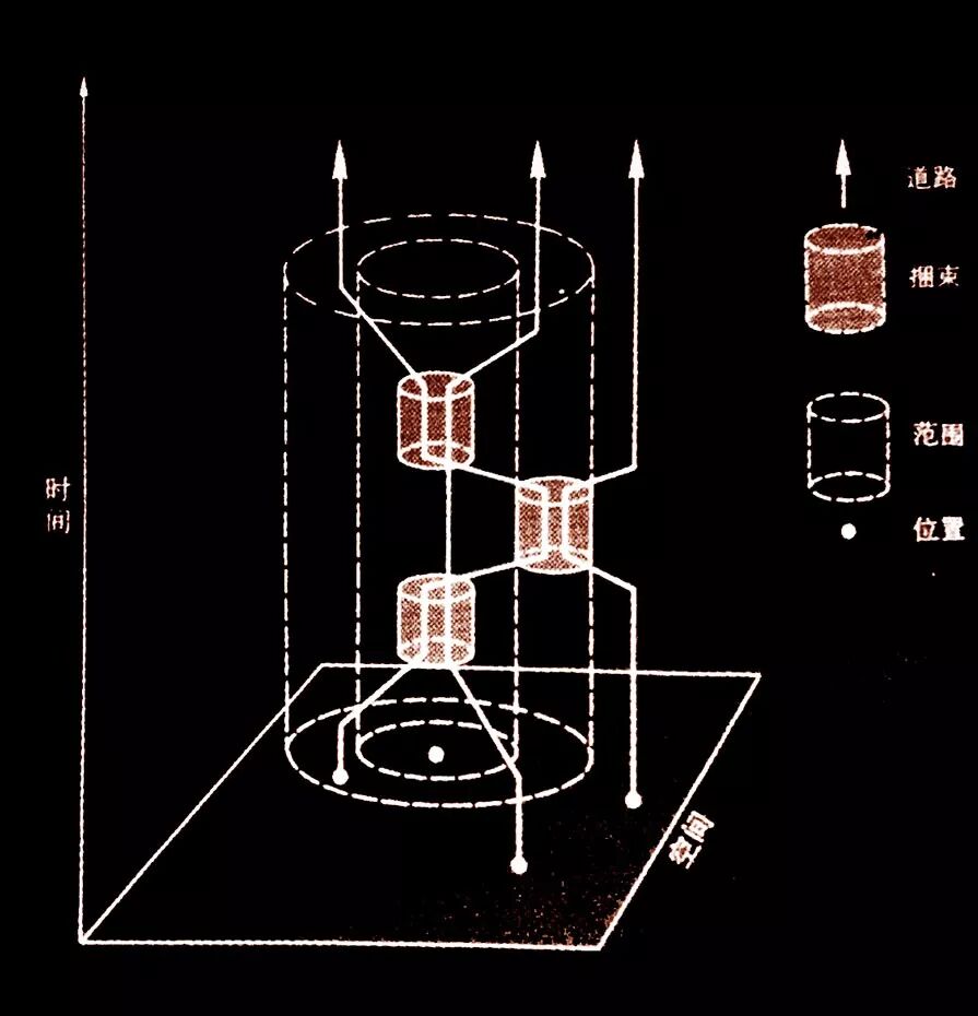 这种“共同在场”,很像赫格斯特兰德在他的图示中标示出的“捆束”(bundles)——它表征着运动与身份认同的关联。这个图示被用来说明普通人的普通时间对社会系统的整个组织形式的影响。对我们而言,它意味着共同在场不仅关乎“位置-空间”,也关乎“运动-时间”。