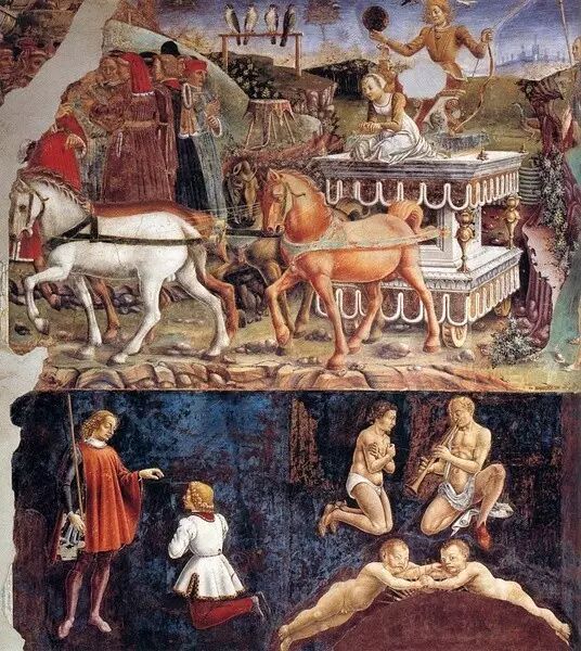 在1912年的国际艺术史大会上,瓦尔堡宣读了他的论文《费拉拉的斯基法诺亚宫中的意大利艺术和国际星相学》。此前几年,他研究了弗兰茨·博尔关于古典时代和阿拉伯的占星学著作《星相》,并从书中发现了解释费拉拉斯基法诺亚宫中壁画组图的钥匙。在这篇论文中,瓦尔堡首次提出了一个不同于“图像志”(iconography)的概念:“图像学”(Iconology)。然而学界对此文的关注,往往停留于方法论的构建,却忽视了另一个问题:为什么瓦尔堡要选择以斯基法诺亚宫中的占星图来呼吁一门尚未成形之学?在这篇文章的尾声,瓦尔堡还提到了文艺复兴时期的另一处星座宫——法尔内塞别墅,但他只是将其中的维纳斯形象作为文艺复兴盛期的成熟案例一带而过。在斯基法诺亚宫的壁画中,吸引瓦尔堡的并非是那些容易和知识拜物相对应的冗余图像(这恰恰是今日误用“图像学”最常见的炫技之举),而是流窜于不同来源的艺术风格之间尚未缝合的历史空隙。正如阿甘本所提醒的,图像学本身绝不是瓦尔堡的目的。从他“对西方人的诊断”的角度来看,“他的目的是使一个既是历史的又是伦理的难题成形”。本次推送的校订版,是在2018年12月11日“院外”发布的选译基础上,重译了文章最后著名的四段结语,主要根据David Britt的英译版 Italian Art and International Astrology in the Palazzo Schifanoia in Ferrara(收录于1999年出版的 The Renewal of pagan antiquity),以及贡布里希在瓦尔堡逝世七十周年所做的纪念演讲“Aby Warburg: His Aims and Methods”,同时参考了阿甘本《瓦尔堡与无名之学》(Aby Warburg and the Nameless Science)中的相关摘引。 选译|它既不讳言于承认古代、中世纪和现代实为互相关联的同一个时代,也不回避把最自由的作品和最实用的作品当做同等有效的表现档案来考察。文|阿比·瓦尔堡 试译|郑小千 校订|周诗岩责编|XQ 费拉拉的斯基法诺亚宫中的意大利艺术和国际星相学|1912|选译本文2500字内……令人遗憾的是,我们只有通过文字记述才了解到卡西莫·图拉(Cosimo Tura)为皮克·德拉·米兰德拉(Pico della Mirandola)的图书馆而画的作品。他们很可能揭示了同时期费拉拉壁画中的早期迹象,即区分文艺复兴早期与盛期的首要风格事件:在描绘古代神话和历史中的宏伟形象时,恢复了更高阶、更理想化的准古代。然而,一道不可逾越的鸿沟似乎横亘于这种人文主义理想与斯基亚诺亚宫之间。正如我们所看到的,在1470年,塞比勒神话(the Cybele myth)伪装成平淡无奇的中世纪街头队列履行其说明性的功能——而曼塔尼亚(Mantegna)尚未表现出诸神之母 [译注:即希腊女神Rhea,等同于Cybele] 应如何在罗马凯旋门上的队列中以庄严的步伐被高高举起。事实上,从单调的法国式(alla franzese)现实主义服饰到法尔内塞别墅(the Villa Farnesina)中维纳斯(Venere aviatica)所居住的空灵之地,科萨(Cossa)的维纳斯(Venus)也没有表现出任何准备跃升的迹象。然而,在科萨和拉斐尔(Raphael)之间确实存在着一个中间地带:桑德罗·波蒂切利(Sandro Botticelli)。但是,波蒂切利也不得不首先将他的女神从单调的类型艺术 [法国式的],说明性的束缚和占星术实践等中世纪的写实主义中解放出来。 多年前,我试图证明归入巴尔迪尼(Baldini)名下的日历版画其实是波蒂切利的早期作品。尽管如此,这些作品无疑反映了后者视觉化的古代观念。从这份日历的文本和表现手法来看,它在我们的上下文中显得很有趣。它的文本是占星术信奉者的实践手册;但是,通过阿布-马萨(Abῡ Ma‘šar)进一步的研究,它也间接地证明了自己作为一份可信的希腊化时期应用宇宙学概要。它的表现手法一方面表明这份日历还有一个稍晚的版本——虽然是个看似次要的原因,另一方面也揭示出个别服饰的差异,这使我们能观察到一种新的风格准则的诞生,一种理想化的,近似古代的运动传递。这份日历的首版大约在1465年出版,准确地遵循着欧洲北部常用的行星书系(planetary series)类型。一个小小的女性舞者略带僵硬地站在维纳斯的孩子(the Children of Venus)中:这个女子身着勃艮第服饰,一顶法式圆锥尖帽(Hennin)将她的头围了起来。她的整体外观证实了巴尔迪尼或是波蒂切利一定参考了一份源自北欧的勃艮第版本。稍晚几年再版的同类版画揭示了佛罗伦萨文艺复兴初期,风格转变的趋势和天性。“宁芙”(nymph),这只佛罗伦萨的蝴蝶,头戴飘逸的饰物,身穿希腊酒神女祭司(Maenad)或罗马胜利女神(Roman Victoria)摇曳的裙摆,从严实的勃艮第风格中破茧而出。我们当下的语境已清晰地说明,在《维纳斯的诞生》和所谓的《春》这两件波蒂切利的作品中,维纳斯都试图将诸神从中世纪神话和占星学的双重奴役中解放出来,并恢复自己奥林匹亚山的自由。爱与美的女神维纳斯在玫瑰的环绕下,赤裸着,将贝壳上的水花掠去。她的同伴美惠三女神,在另一件维纳斯绘画中仍相伴左右,数年前,我将那件作品取名为《维纳斯的王国》(the Realm of Venus);今天我想提出稍稍不同的解释,它或许还向精通占星术的文艺复兴早期观者传递美丽之神的实质:维纳斯行星(Venere Pianeta),这位将自然再度唤醒的女主人出现在了由她掌管的四月份。我认为,这两件作品都表达了对西莫内塔·韦斯普奇(Simonetta Vespucci)的怀念与崇拜,她在1476年的4月26日逝去。波蒂切利从已有的传统中取材,却将其运用于一种全然理想化和独立的人的创造。他从