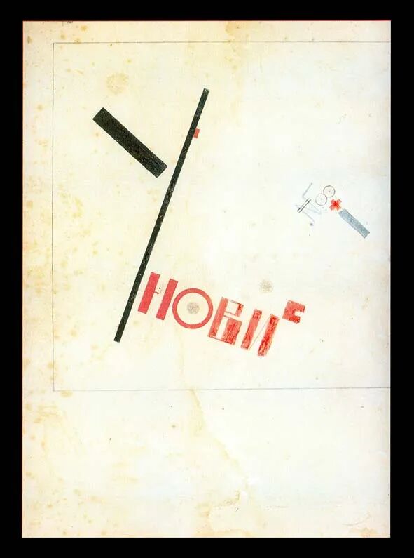 这个“艺术政党”的成长表现出井喷式的发展。当时甚至还有这样的一个传言:该“政党”的艺术活动并非以天计算,而是按小时制进行推进的。这种疯狂的发展速度还源于该“政党”在1919年11月所接受的一项重要委托,即在12月17日维捷布斯克反失业委员会(the Vitebsk Committee to Combat Unemployment)周年纪念日到来之前,为其设计并制作相应的装饰用品。马列维奇和利西茨基制定了项目计划并绘制了草图,但为白军军营大楼(White Army Barracks building)制作所需的至上主义风格装饰面板,却需要耗费大量的劳动人力,因而,老师和学生都共同参与到了项目的执行落地中。这栋大楼同时还是委员会的办公场所,自然,庆典所需的标语、口号及舞台装饰,也就件件缺一不可。这样的项目实践机会,自然也就成为了至上主义团队的卖点之一,逐渐吸引了维捷布斯克人民艺术学校大部分学生的加入和参与。自此,至上主义者开始逐步信奉“总体效益最大化”的原则,而这也将成为Unovis日后诞生的一大奠基石。 [3] Kazimir Malevich, letter to Ol'ga Gromozova, 1920, Manuscript Division, State Tret'iakov Gallery, Moscow, f. XXV/9,1- I3-I3ob. Published in Shatskikh, “K. Malevich v Vitebske,” p. 43.[4] 利西茨基首次使用El和El’的实例可以在《Unovis Almanac No. 1.》找到。在改用德语和拉丁字母后,他正式改名为El Lissitzky(埃尔·利西茨基)。但没有证据可以证明利西茨基选择El’是因为它的发音与俄语字母中的l相近,因为当时liudi才是其正确的发音。不过,毫无疑问,利西茨基这个名字受到了马列维奇发音习惯的影响,并对Unovis的成员们有着深刻的含义。马列维奇自己也不止一次提到过这个情况,而查什尼克更是在他未婚妻的相册中提醒她“这个疯男人的生活方式是U-EL-EL”。详见Ilya Grigorevicb Chashnik: Lyucite/1902—Leningrad/1929; Watercolors, Drawings, Reliefs. catalogue for exhibition at Leonard Hutton Galleries (New York: Leonard Hutton Galleries, 1979), p. n. 利西茨基设计的工厂宣传牌|1919 在1919年末到1920年初,于16届国家艺术展(Sixteenth State Exhibition)上举办的马列维奇个展,更是让集体前往莫斯科观展的维捷布斯克人民艺术学校的师生,对马列维奇和他个人作品中所展现的灵光,产生了远超十倍的支持和赞赏。(当时还是学生的建筑师莫伊谢伊·列尔曼(Moisei Lerman)曾于日后描述了这段行程、这场展览、及其与弗拉基米尔·马雅可夫斯基相遇的模糊记忆。) [5]同时,马列维奇也具备了一名领导者所应包含的所有特质:拥有革新性的艺术作品、完整推敲的理论、清晰的推进计划、以及阶段性的卓越社会效应。