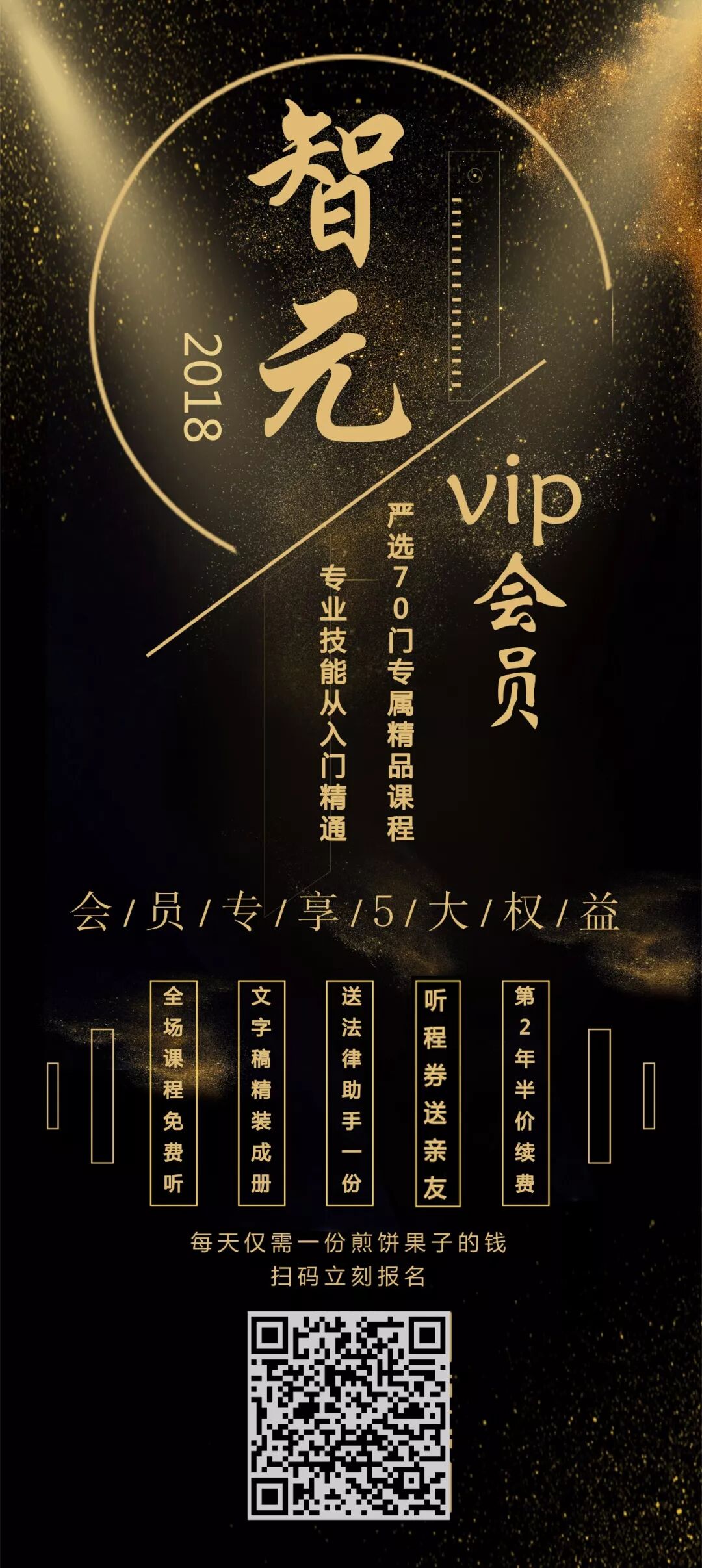 ●福利这么足,还等什么,智元法律课堂2018VIP会员火爆报名中,赶快点击【阅读原文】报名吧!