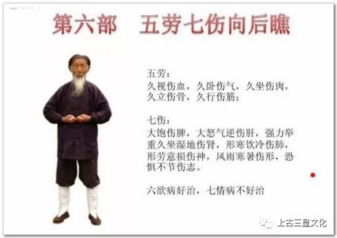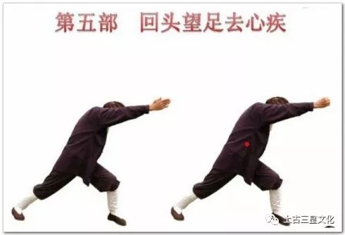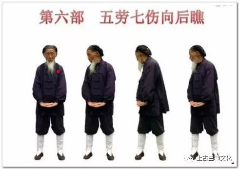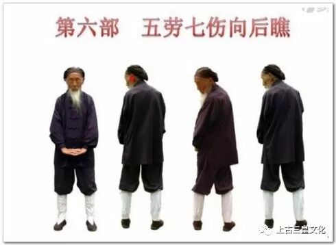 这个顺序正是《黄帝内经》五脏所示的顺序,有炼了一脏、巩固一脏之功用。在此基础上,还要对一些潜伏的“五劳七伤“身疾,以“神光向后瞧”来扫除它。