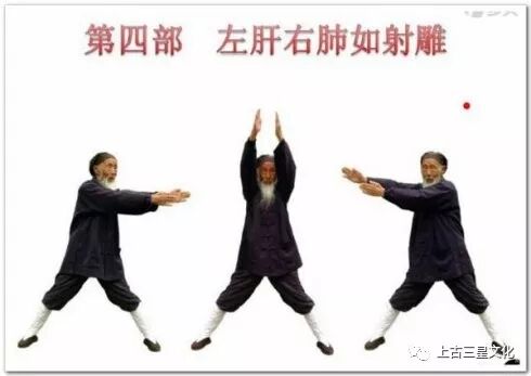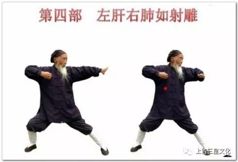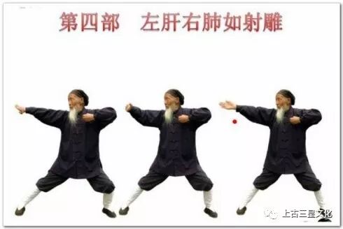 6.攥拳,往回收。接着右弓射雕,动作同前,单方向相反。