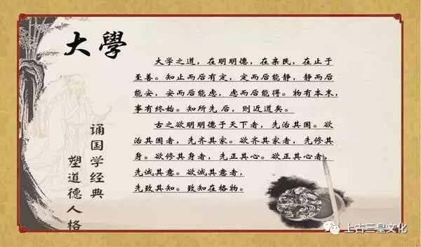 朱子是宋朝的大儒,他编订《大学》这部经典,是依据程子(名颐,字正叔,洛阳人,亦为宋朝大儒,世称伊川先生)所定的原本。所以在《大学》的经文之前,先引述了程子这段话: