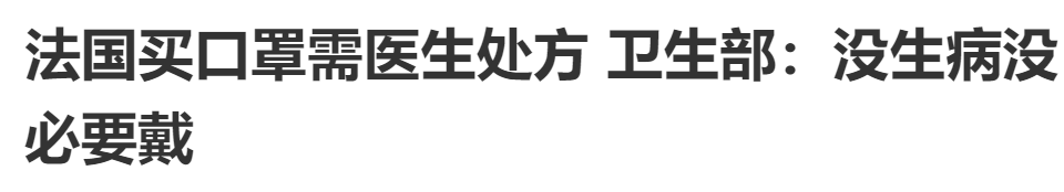 法国卫生部长不久后宣布:“法国将考虑禁止没生病的人戴口罩,如果没有医生开具的处方,则无法直接购买口罩。”