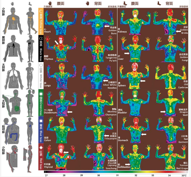 十二类茶叶激发的人体红外辐射影像与经络模型吻合