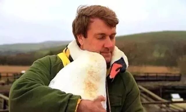 这只天鹅在当地有不好的名声,它很凶,伤害过人,当它被卡住的时候,只有RichardWeeze站出来帮它脱困,它用脖子绕着恩人,表达感谢!