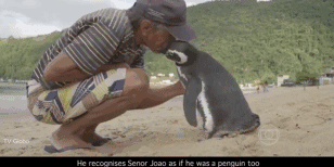 在巴西,一位老人曾经在海边,救起了一只满身油污、奄奄一息的小企鹅。在他的悉心照料下,小企鹅最终恢复健康、重返大海。