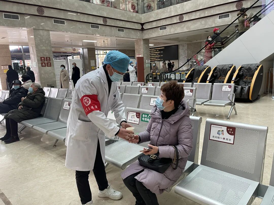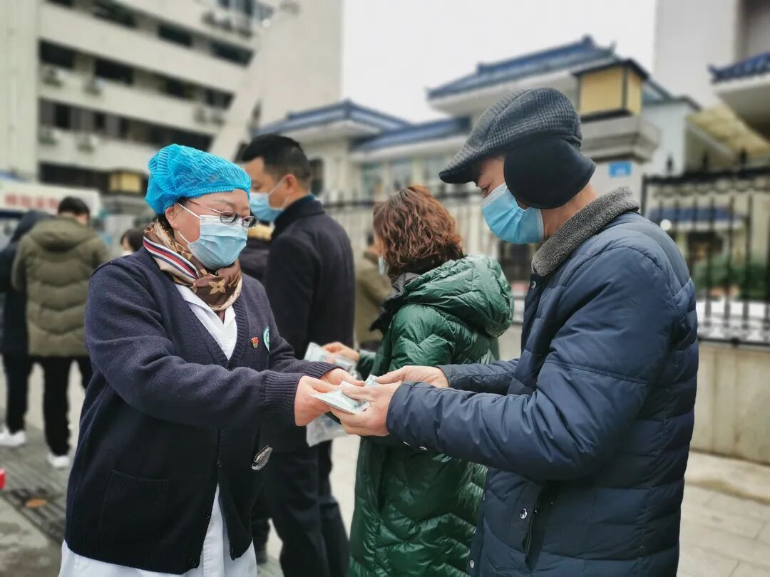 眉山市中医医院在门诊大厅免费发放预防新冠肺炎中药汤剂。