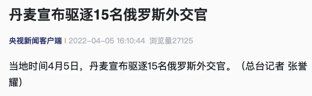 当地时间4月5日,丹麦宣布驱逐15名俄罗斯外交官。