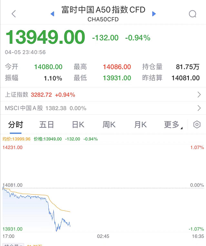 A50也跌了。