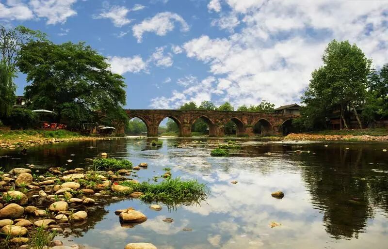 每个人心里都有一个古镇情结。五凤溪依山而建,一路山山葱郁,绿水长流。
