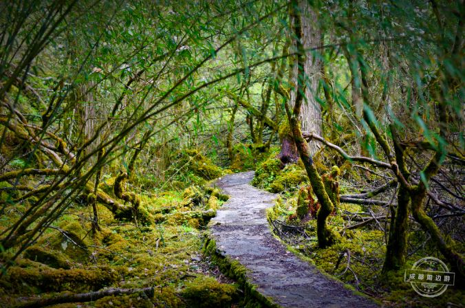青苔在道路两侧、树干随意蔓延,没有人为的清理,更多了一分万物自由生长的洒脱与随性。