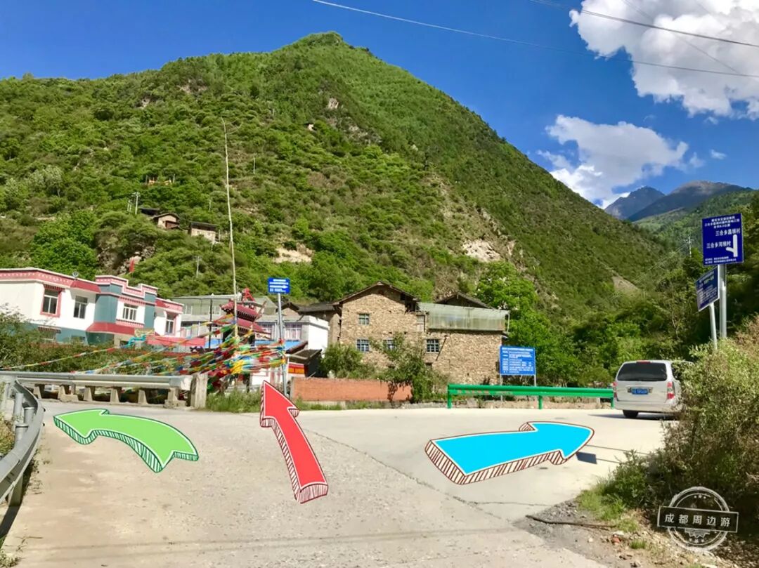 注意!到了昌坝村三合乡,有一条分叉路口,往右边道上开,上面有一个停车场,下了车就要开始徒步啦!