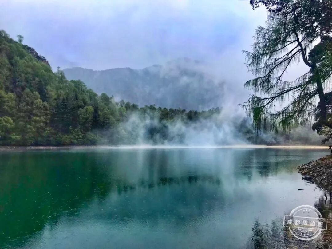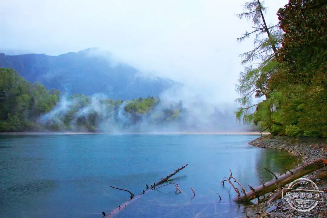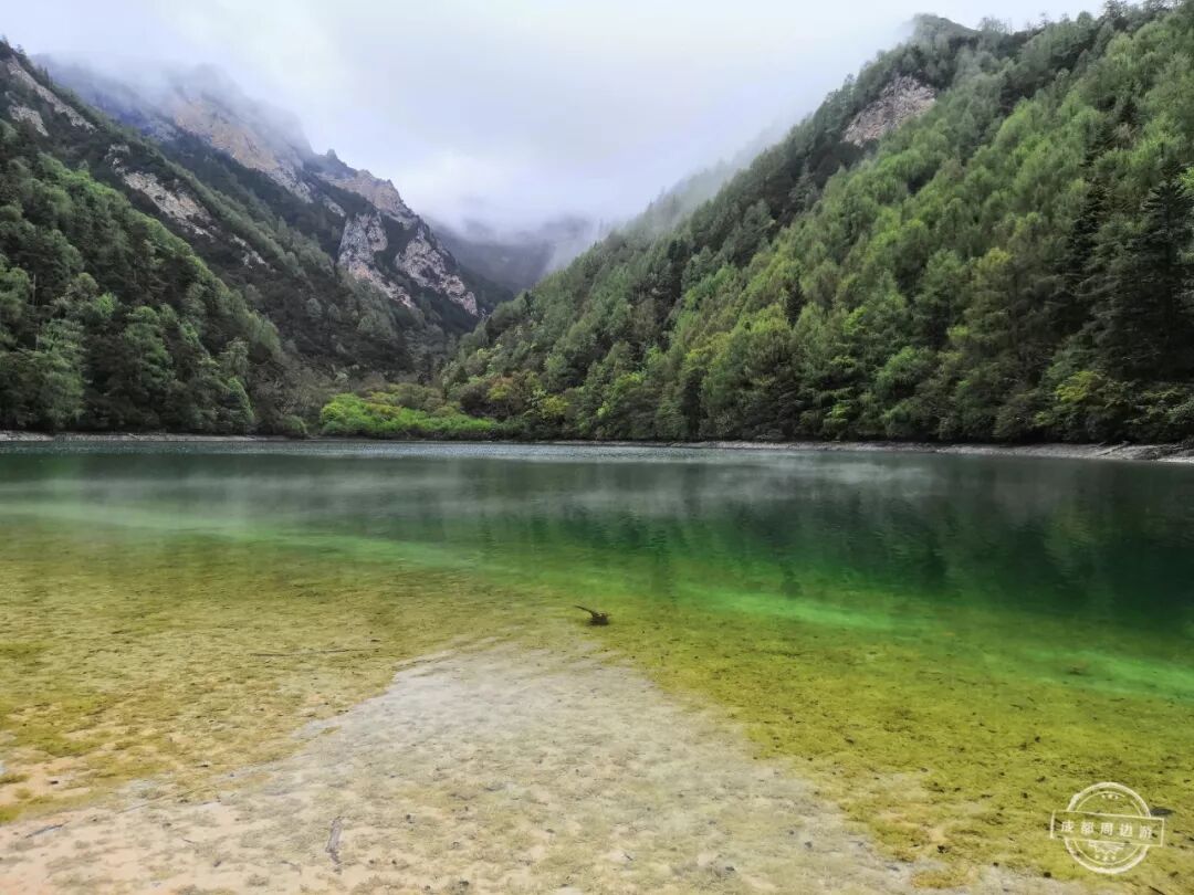 四周植被茂盛,湖水清澈见底,颜色由绿变蓝,就像一颗璀璨的宝石镶嵌在山间!