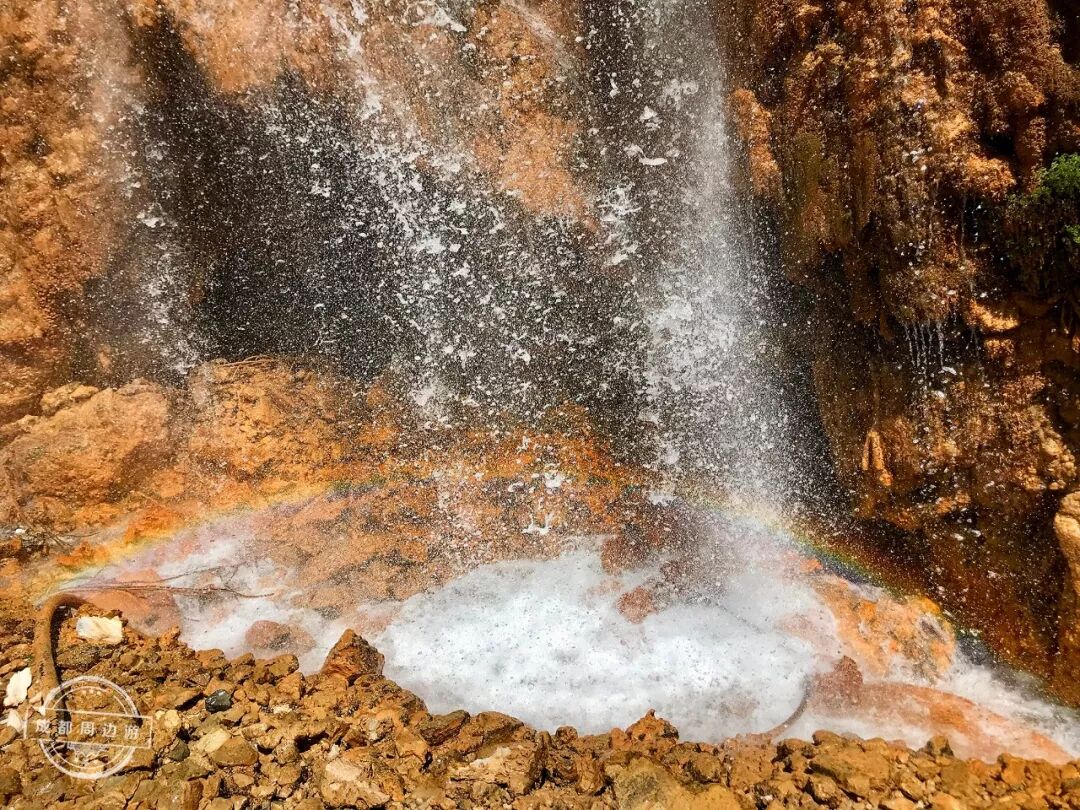 睁开你们的卡姿兰大眼睛仔细看,瀑布下的有彩虹哦!