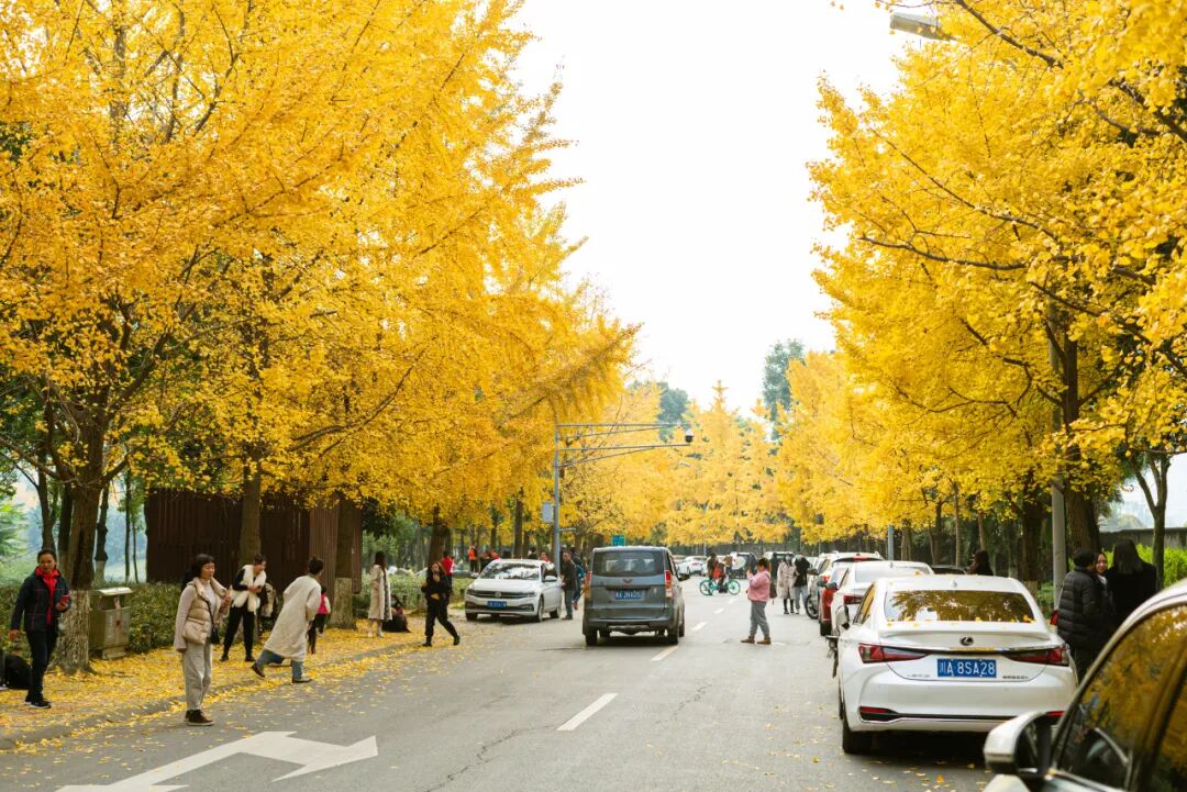 这是一条可以和锦里西路/中路相媲美的银杏大道,延绵几公里,两侧全是密密麻麻的金黄色,真的超级唯美壮观。