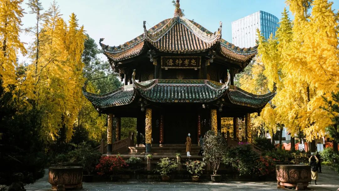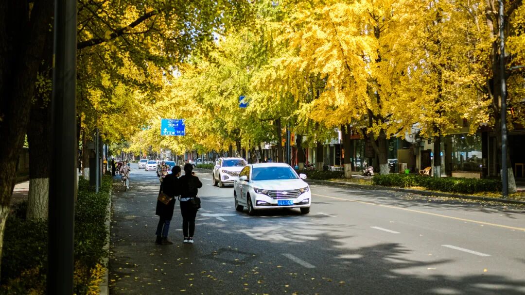 挨在一起的锦里西路/中路,是成都人年年都去的银杏王者之地。