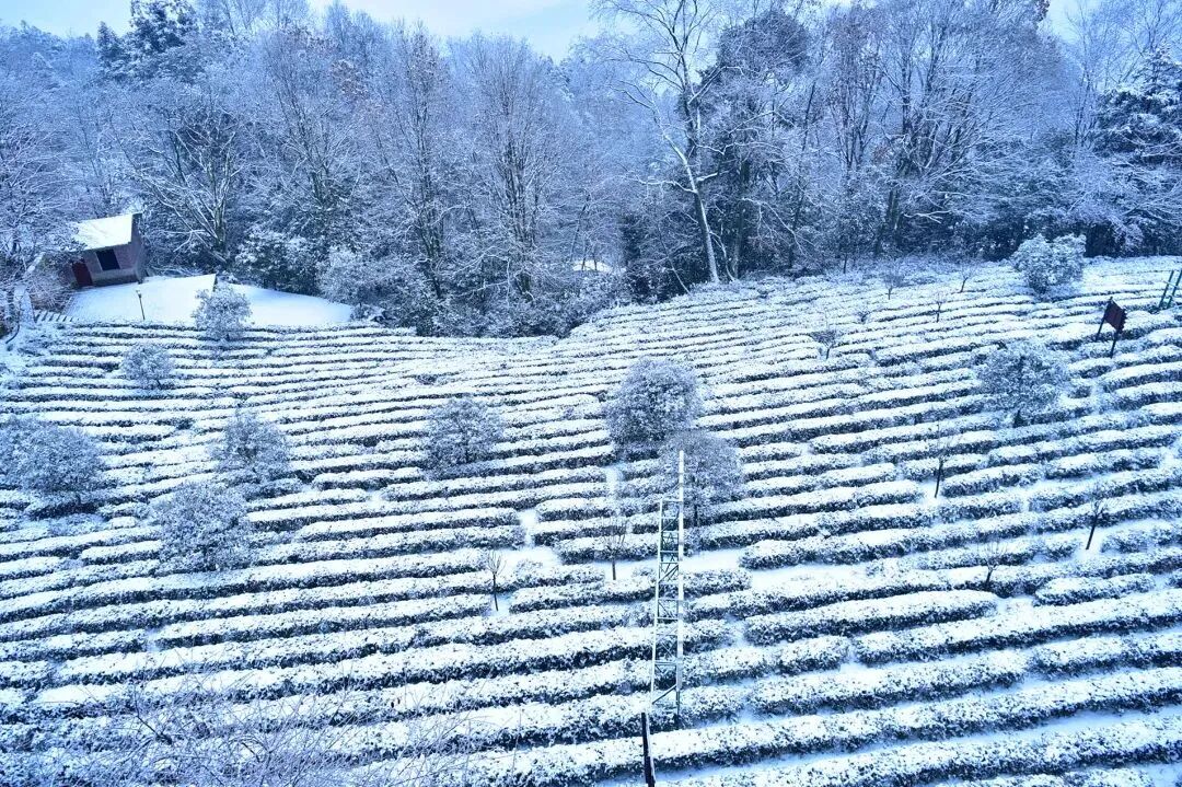 眼下的茶园披上厚厚的棉花被,层层叠叠,像一个个可爱的小雪堡,有种别样的美感。