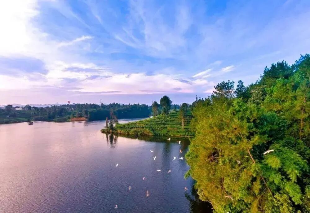 除了蒙顶山的冬雪浪漫、牛碾坪的万亩茶园,名山区的月亮湖也有着让人流连忘返的诗意景致。