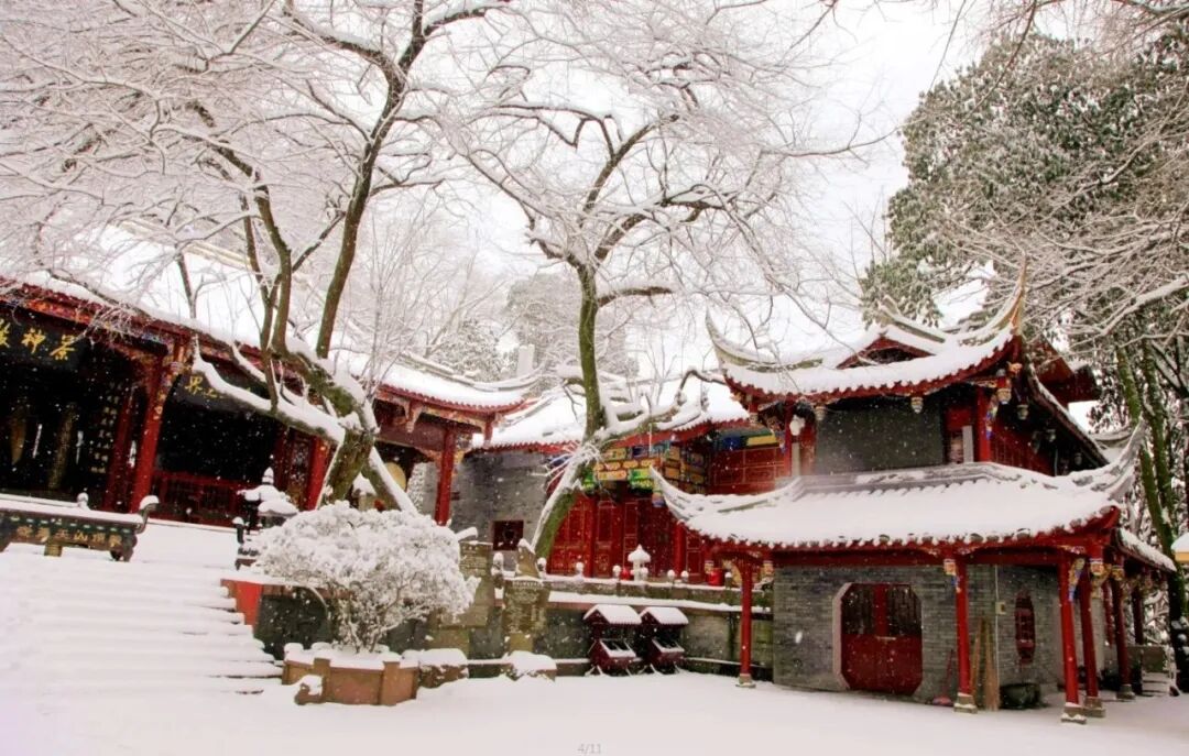 天盖寺的红墙庙宇,亭台楼阁、白雪纷飞,太适合换上古装红袍拍一组雪景古风大片。