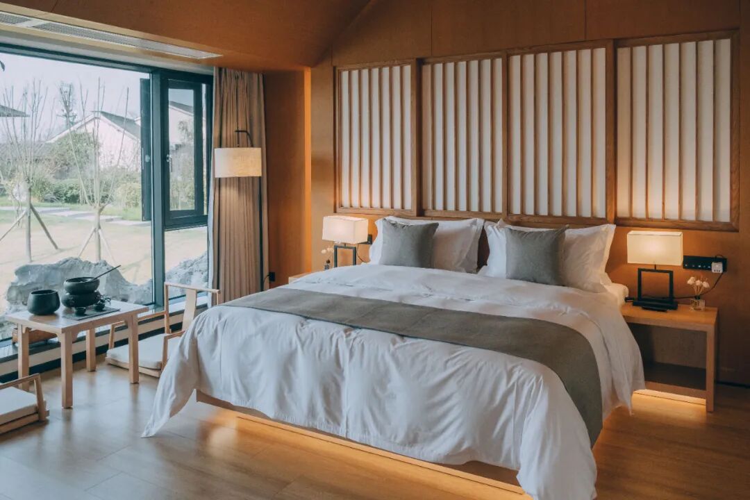 2800㎡仅设11间套房+2栋临湖别墅,每一间极具苏州园林特色,在这里轻松就能get临水而居、推窗即景的体验。