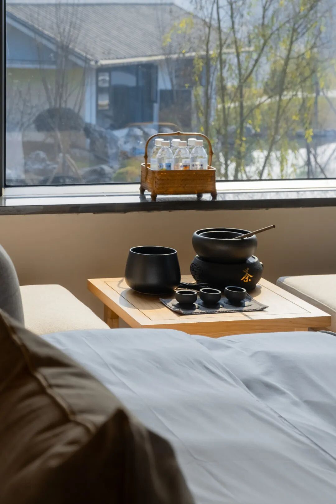 每一间客房窗外都是庭院式的风景,推窗即是水雾弥漫、鸟鸣环绕、鱼儿成群的景象。