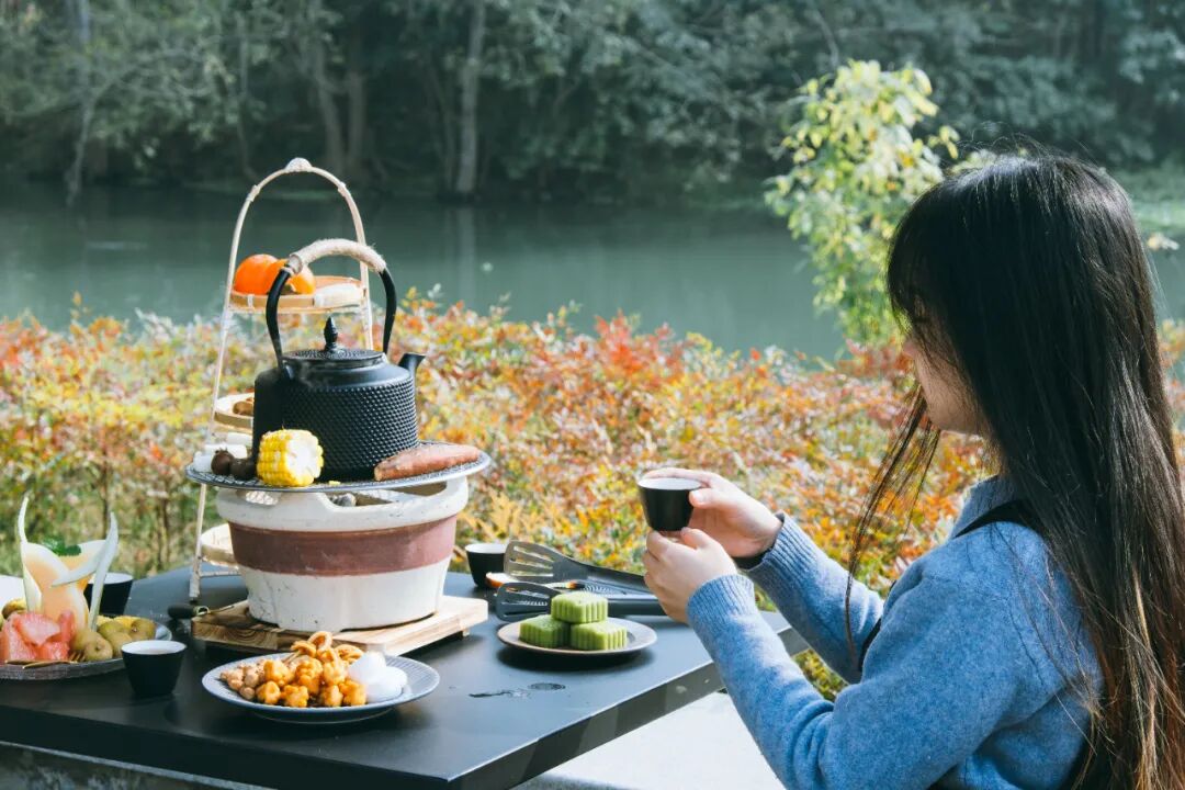 河边围炉煮茶、琴室弹琴听曲、品尝正宗川扬菜、露台坐拥百亩花海...
