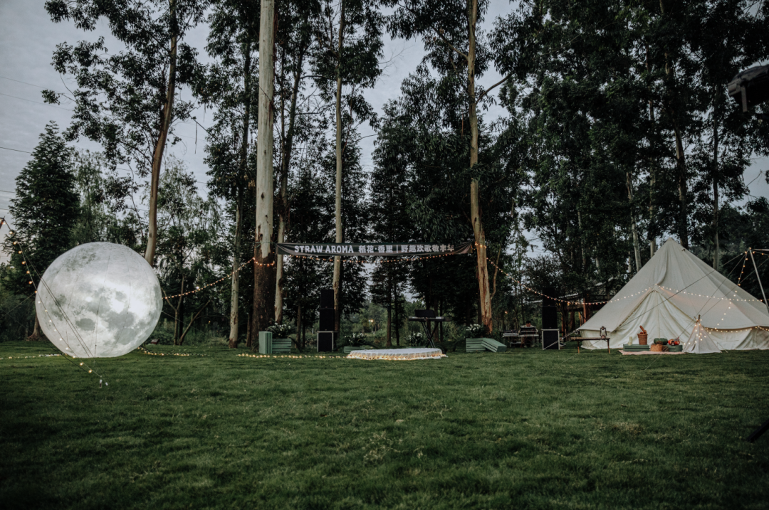 【稻花·香里】将后花园打造成了一片露营地,一排排高大的柏树包围了一整块草坪,足以满足各种露营需求。