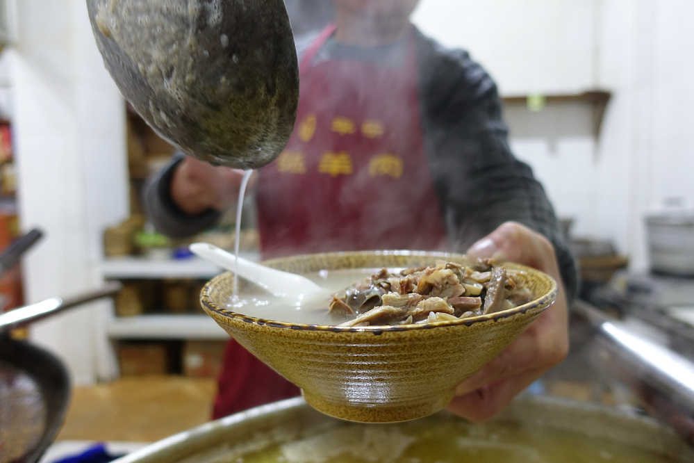 奶白色的猪骨蹄花土鸡汤,分分钟鲜掉眉毛,配上面条,很适合用来唤醒冬季饥肠辘辘的灵魂了~精选适龄本地放养山羊作为原料剔骨熬肉,文火熬煮让时间的魔力浸透每一丝羊肉。一口下肚,温暖全身。千万不要小瞧邛崃的钵钵鸡,这可是奶汤面的最佳CP。