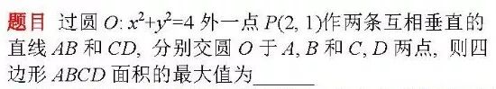 分析: 用学生最容易理解的最原始的方式直接求解面积问题, 得出面积为斜率的函数, 最后利用柯西不等式求出最值。