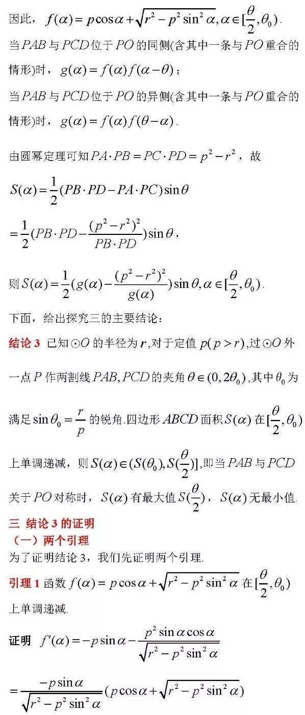 结论3能不能继续推广到椭圆,双曲线,抛物线中去?这个问题本人暂时无法解决,有兴趣的读者可以一试.