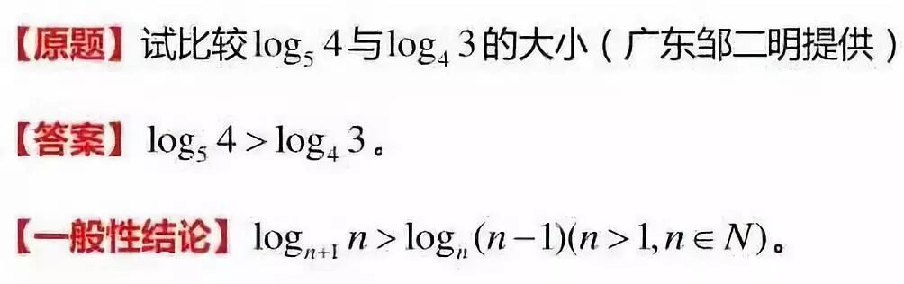 【编者按】公众号邹生书数学在20191015的推文《一道看似简单的对数值大小比较的小题的多种解法与推广》中,从两个异底对数值的大小比较题目得出了一般性的结论,并对这个一般性结论给出了五种证明方法,从证明知道这五种证法都没有离开对数,都是在对数的范畴下完成的。文章推出后,“高中数学解题交流二群”又进行了新思路新解法的讨论,成都梁科老师率先提出了新思路:通过换元然后指对互换,将对数比大小问题转化为指数式比大小来解决,最后借助用幂函数图象的平移数形结合比较大小,解法形象直观,但没能进行严谨的代数证明,有点遗憾欠缺。很快山西李有贵老师通过构造对偶函数利用单调性给出了非常漂亮的代数证明,现将其加工整理与读者朋友交流分享。