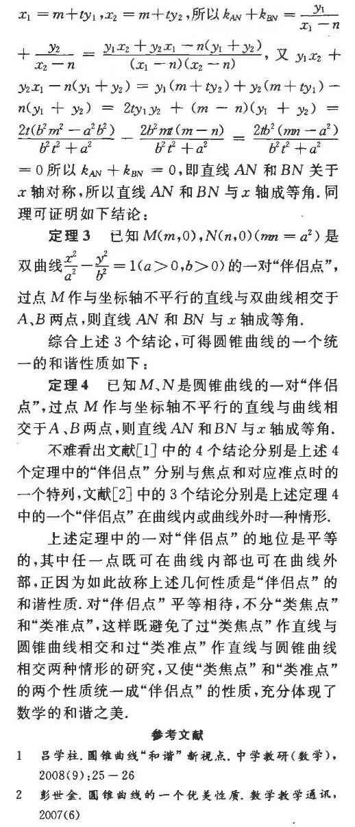 2018年新课标 1 卷理科和文科的解析几何大题,以及2015年新课标1卷理科大题的最后一问题都与圆锥曲线等角性质有关。由发表于《中学数学教学》2009年第2期的拙文《圆锥曲线“伴侣点”的一个和谐性质》知,圆锥曲线的等角性质的根源是“伴侣点”。从问题产生的时间顺序以及问题之间的逻辑关系来看,如果说圆锥曲线的等角性质是第一代,那么椭圆、双曲线和抛物线的等角性质属于第二代,这三道高考题保留着第二代的基因,无疑就是第三代了。也就是说这三道高考题是文中性质1和性质2的特殊情形,是他们的“子女”,是圆锥曲线等角性质的“孙子”和“孙女”!