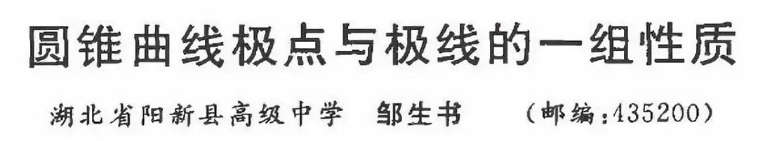 邹生书,男,1962年12月出生,本科学历,理学士学位,中学数学高级教师,黄石市高中数学骨干教师。主要从事高中数学教学、高中数学解题研究和探究性学习等。从2007年8月到2018年8月,在《数学通讯》《数学通报》《数学教学》《中学数学》《中学数学教学》等,二十多种学术期刊上发表解题和探究性学习文章300余篇。