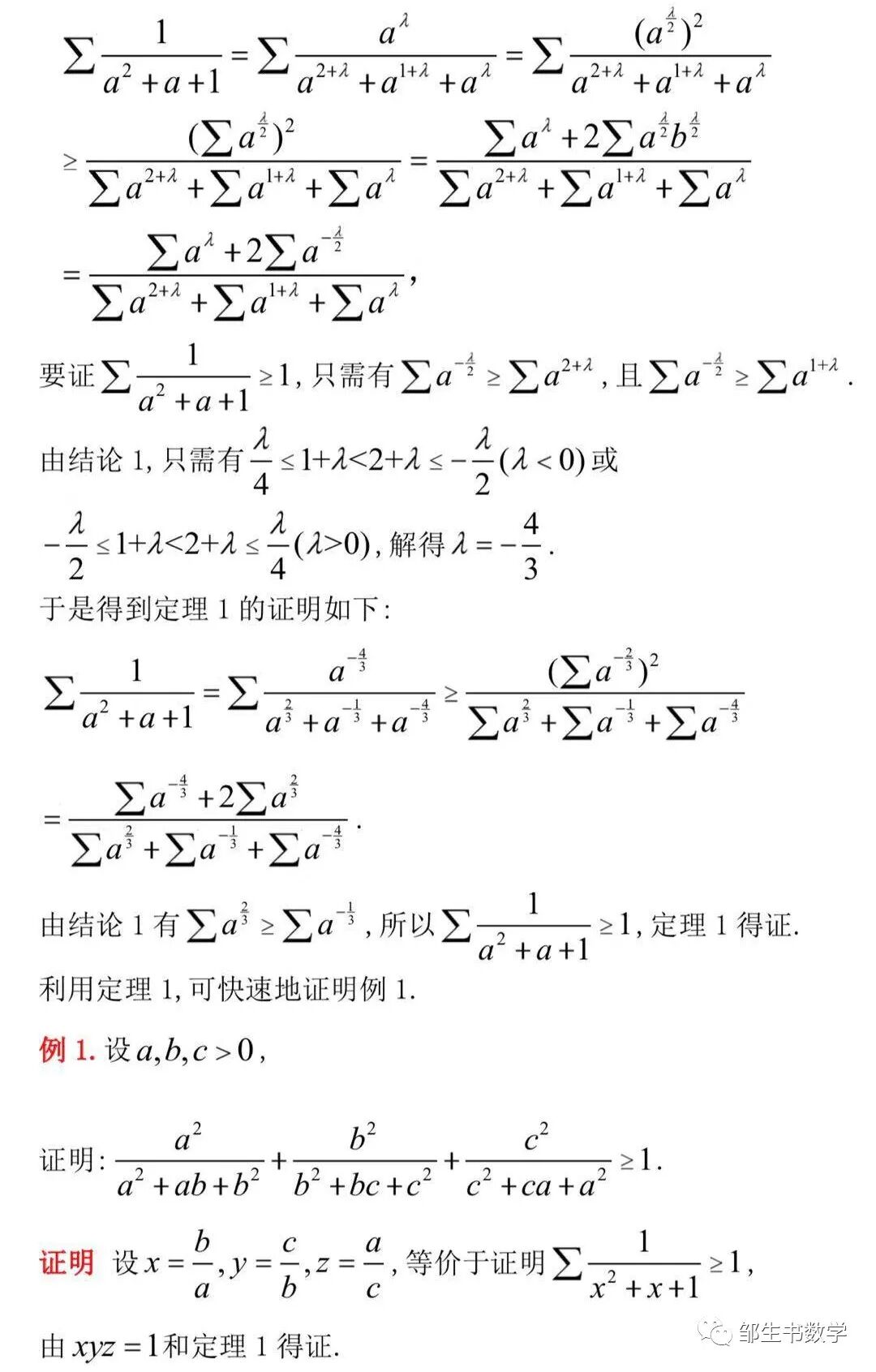 在不等式中,经常遇到条件为abc=1的不等式,比如越南不等式专家Can-Hang的一个经典结论,本文称之为定理1.