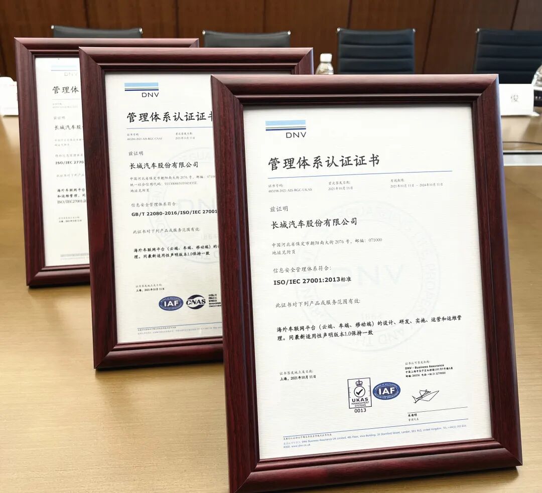 ▲ 长城汽车正式通过ISO 27001&27701双认证