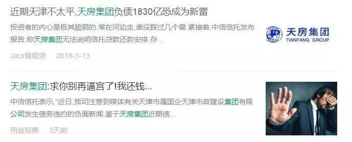 前几天,中信信托发布公告称,天房集团无法说明信托贷款还款安排,存在债务违约的风险——天津最大的国有企业。