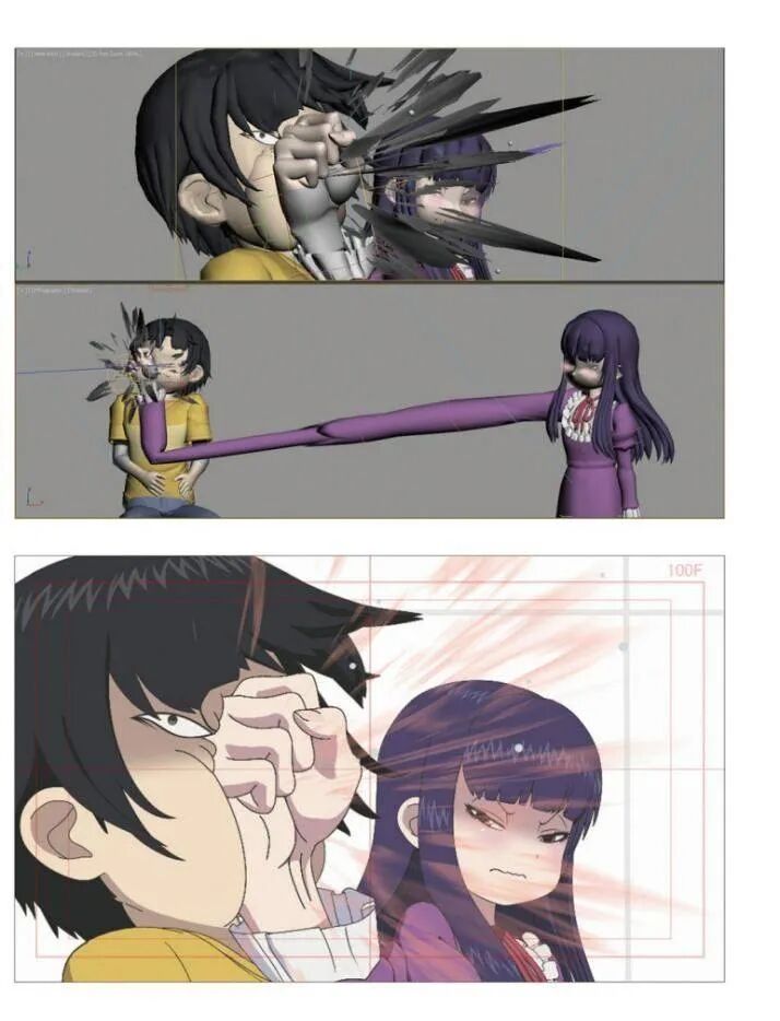 至于为了让一个动作更有冲击力,配合镜头让模型进行拉伸、形变,已经是基本操作,你在很多3D动画的制作中都能看到这个方法。
