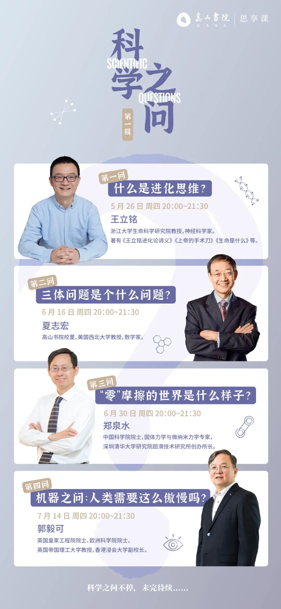 向过去、向未来、向宇宙、向自我,穿越时间与空间,高山特此邀请热爱科学思辨的你,与我们一起,向科学发问。