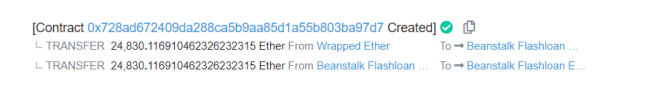 6. 最后攻击者将流动性移除并归还闪电贷,把多余的代币兑换为24830个ETH转入攻击者账户中。