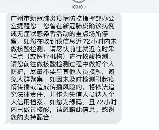 我实在无法理解,都一年过去了,为什么还是不断有人试图挑战法律权威,为了自己的私利拉整座城市人民下水。以我自己来说,每次收到类型下面这种短信都恨不得马上就能检测。