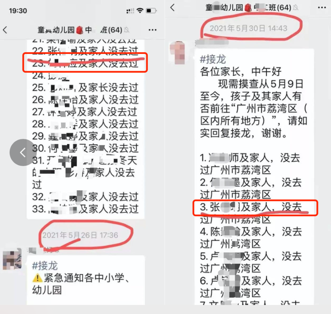 据网上有熟悉人士爆料,5月30号他们孩子所在幼儿园在家长群调查轨迹时,其还接龙说没去过荔湾区.....再到后来,6月3号去医院被要求填写调查问卷,里面关于「是否去过高风险区域」这个问题,依旧选择填写了「否」。