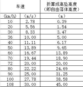 已经有网友计算出了不同车速折算成高坠高度的数据。