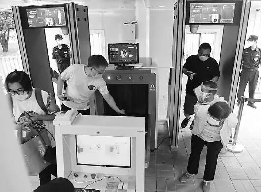 水瓶、耳机、钥匙……经过X光检测仪时,背包内所有物品影像一目了然。