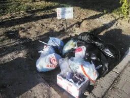 灵秀山庄撤桶并站后,有些居民无视提醒,仍在原址丢弃垃圾。