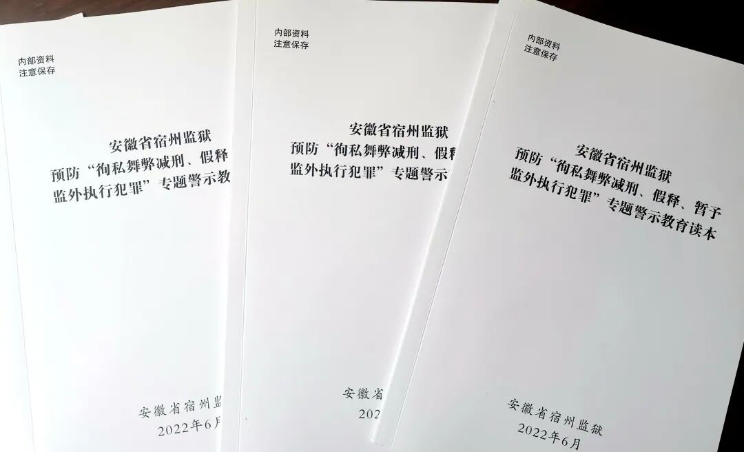 编印徇私舞弊减刑、假释、暂予监外执行犯罪被判刑的典型案例,印发一期学习手册,进一步强化警示教育成效,为广大民警念好紧箍咒。