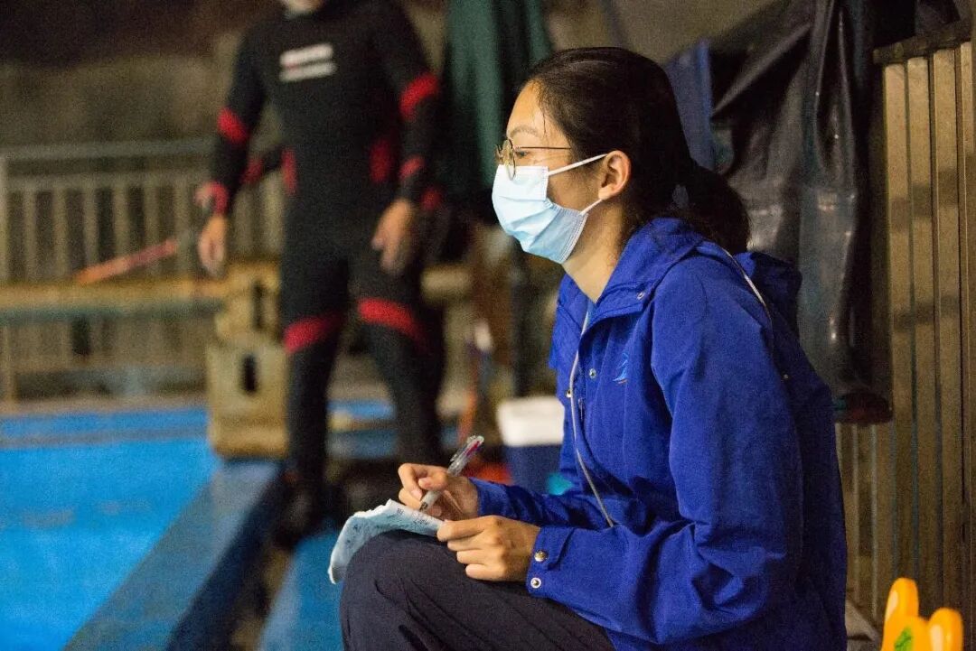 为了全方位保障小虎鲸的健康成长,上海海昌海洋公园组建了由环境监测、临床兽医、检验兽医、营养专家、行为管理专家、保育员等近50人的专项工作小组。小虎鲸出生后,保育团队更是对“饼干”母子进行了24小时全天候、多维度的健康追踪和照护,以保证实时了解它们的健康情况。