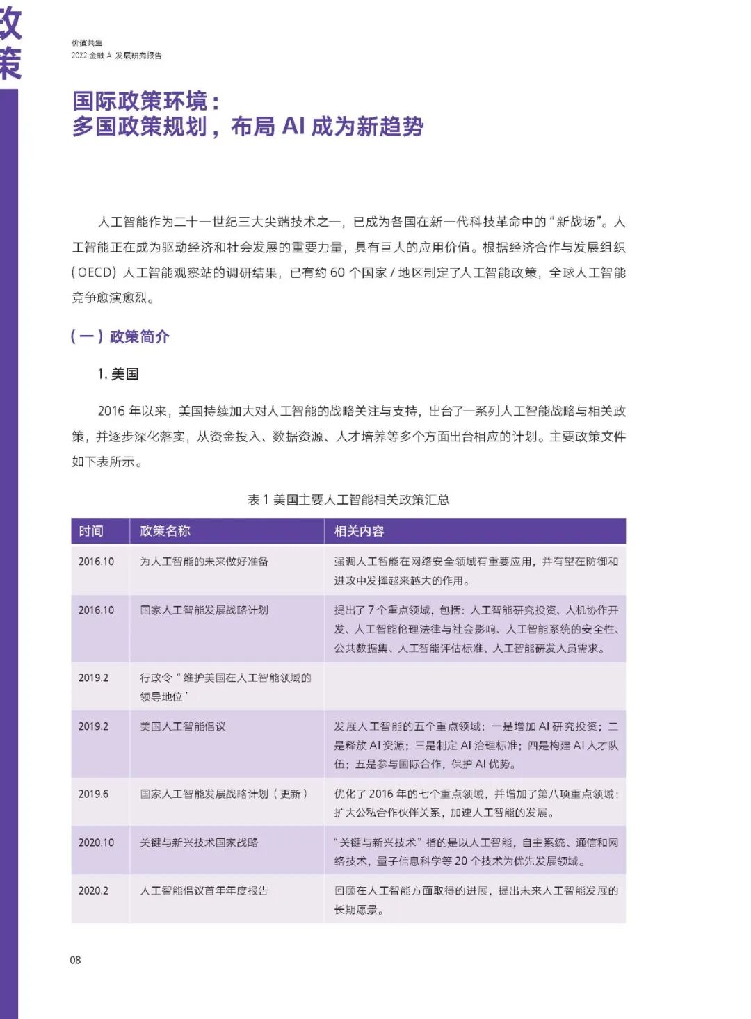 在政策层面,政策引导金融与AI融合发展,金融AI迎来新阶段。报告从国际政策、国内政策、行业政策三个方面,介绍了金融AI发展的环境和机遇。近年来,从国际到国内,从社会整体到金融行业,政策层面不断出台战略规划,积极推动人工智能与金融的融合,深化AI的金融应用。报告指出,从政策趋势上看,金融AI发展前景广阔。随着全社会数字化的推进,金融机构与供应链、产业链上下游数据的贯通,以及跨界合作的推进,人工智能将为金融机构的业务提供更多方面、更好效果的助力作用,赋能金融机构降本增效、提升服务体验。