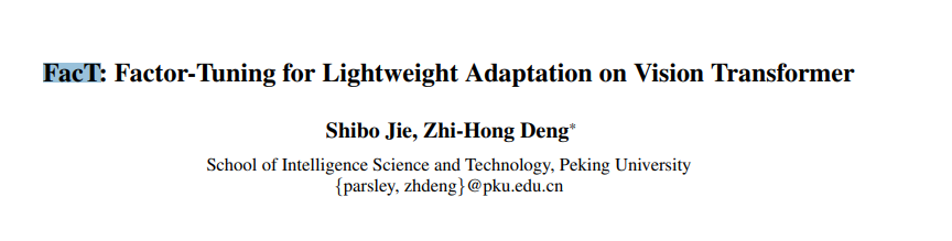 后台回复“FACT” 就可以获取《【AAAI2023】FacT:视觉Transformer上轻量级自适应的因子精调》专知下载链接