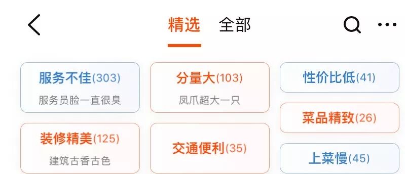 在“大本营”天津,狗不理的一家分店的评论中,排名最高的标签是“服务不佳”,最高的几个标签里,更是没有一个称赞菜品口味的。